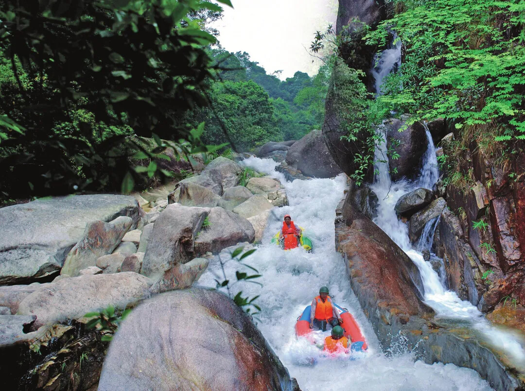 云灵山大峡谷漂流“5.2公里”,总落差达“216米”,漂流河道共分为两个漂段,第一段3.3公里为“激险漂”,惊险刺激,带来“挑战自我”的全新体验。其中一号位落差“29.8米”,二号位落差“26.9米”,并拥有全国独一无二的“一条河道,两条漂道”的创新设计;第二段1.9公里为“亲情漂”,此段老少皆宜,“清凉一夏”。